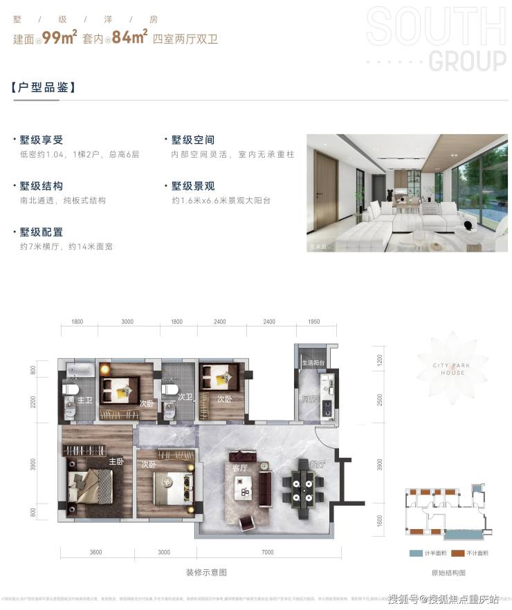 墅级结构:纯板式结构,南北通透