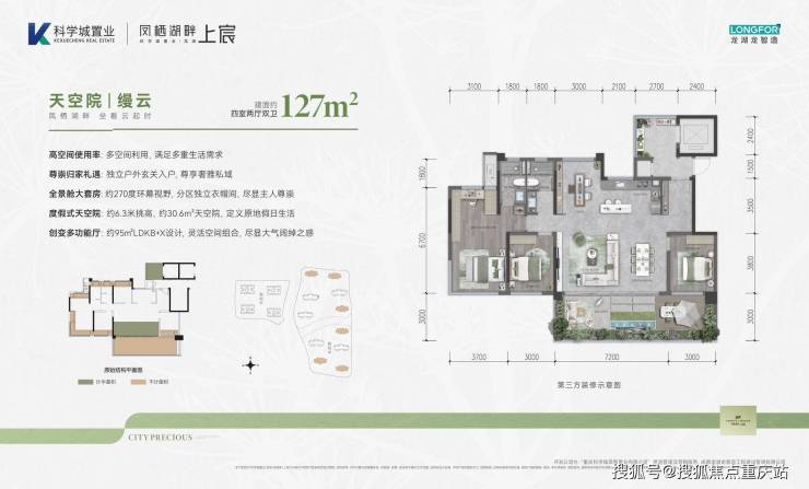 世界500强龙湖集团:重庆高端生活版图,半壁龙湖智造。31年深厚造诣,荣膺中国房地产企业综合实力10强,2022年物业服务满意度领先企业第1位。本项目由龙湖旗下龙湖龙智造进行建造管理,承袭龙湖优秀产品力,焕新科学城人居。