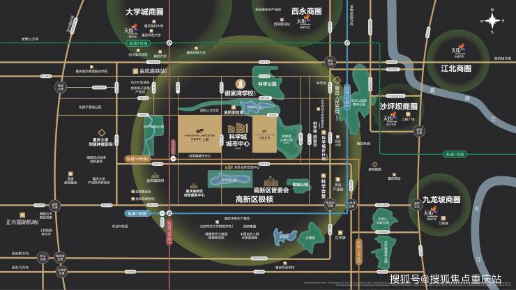 成渝中线高铁(在建中) 规划科学城站,科学城核心区新设金凤高铁站,实现重庆市中心与成都市中心以及长三角城市群主要城市间的高铁直达。