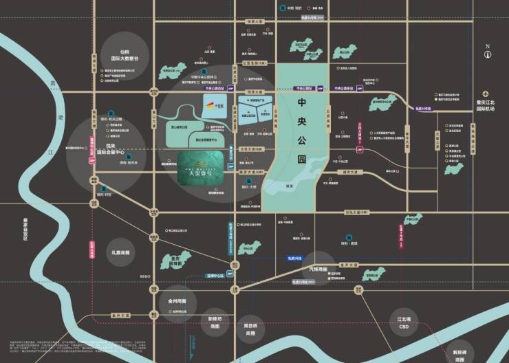 四横一纵的城市交通路网(同贸大道.兰桂大道.腾芳大道.甘悦大道.秋成大道)可快速连接悦来/空港新城/园博园/金开大道