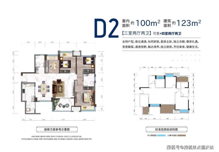 建面约103平套二