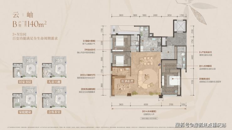 超尺度空间、四房双套卧、成长型奢宅