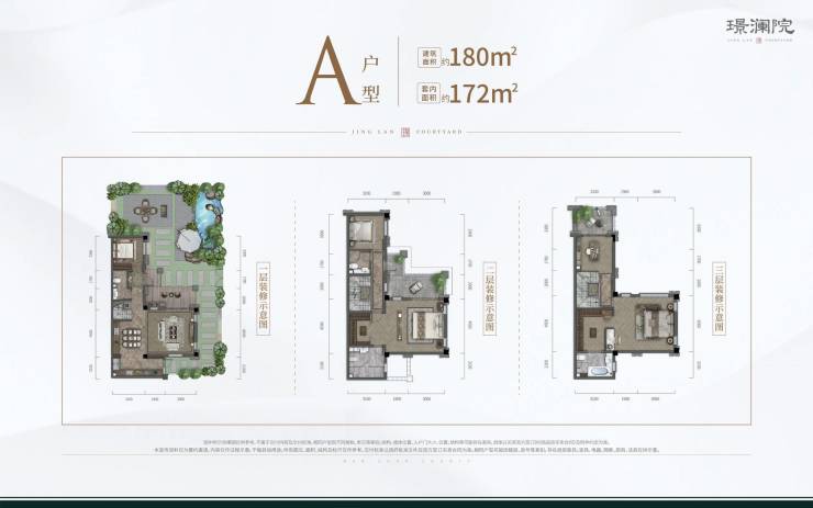 A户型 (套内172㎡,建面180㎡实得面积220㎡)花园约80-120㎡