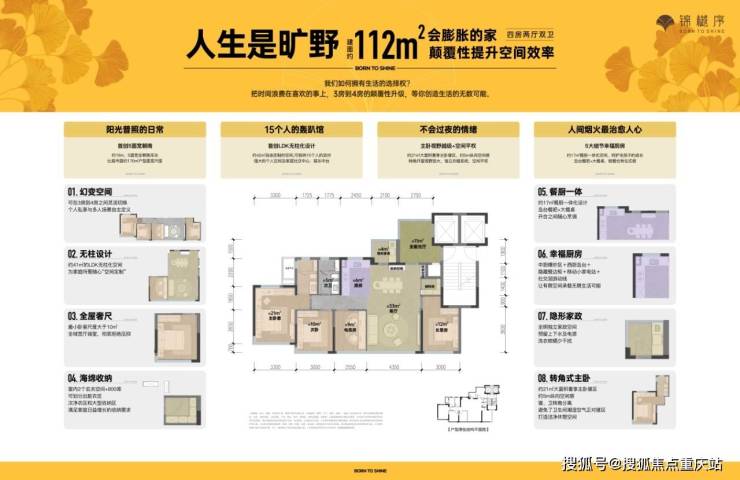 溯源幸福感哲学的灵感设计,匠心打造建面约112-175㎡魔方生长宅,从品质单身到两人一宠;从三口之家、二孩家庭到三代同堂,全生命周期生长户型,将家庭空间打造成24小时不间断的真人秀生活聚场。