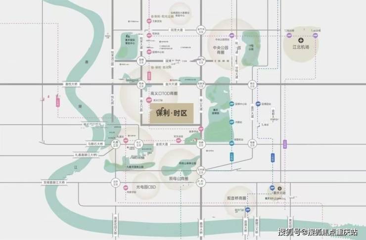 3.2 悦来有3个板块(生态城➕会展城➕智慧城),保利时区属于生态城,紧挨着礼嘉和园博园,离照母山光环商圈车行距离约15分钟,位于金海湾公园延伸段,嘉悦江湾处,这里是重庆唯一的海绵城市集中供能区域