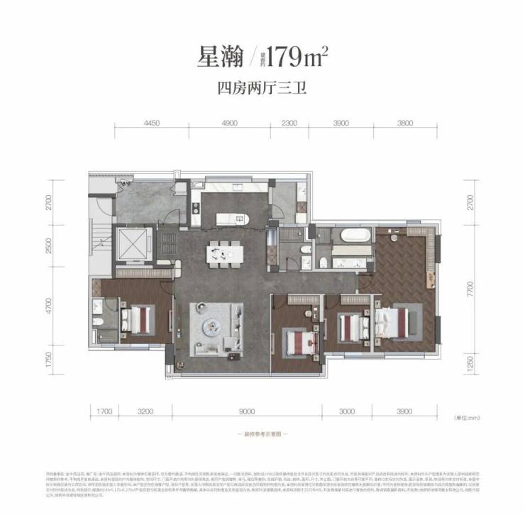 新规之下,金牛西派御府的户型又有了进化。以其主力爆款建面约179㎡户型为例。