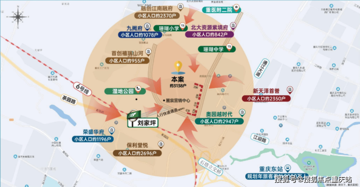 与TOD、刘家坪轻轨站直线距离200M,几何中心占位,交通四通八达,汇聚磅礴人潮,海量消费前景。