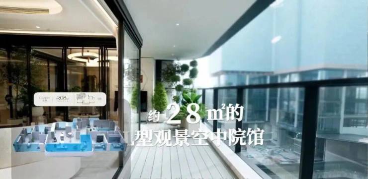 整体采用23.4米超宽面宽设计,形成完整的南向采光界面,配合约28㎡的L型观景空中院馆,实现景观与生活的无缝连接。院馆与公共空间打通后,既可改造为双套房方案,也可作为亲子互动、家庭聚会或艺术休闲区,空间自由度极高。