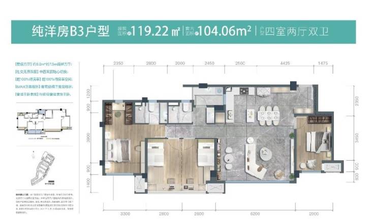 3、轨道:直线距离轨道9号线(在建中)起点站新桥站(在建中)约600米,是主城区第一条西北大贯通的轨道线路,全程14个换乘站点,链接沙坪坝、观音桥、江北嘴和中央公园等重要商圈聚集地;