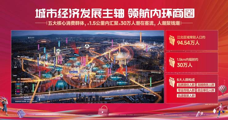 1.5公里辐射约30万常住人口主要石马河片区、南桥寺片区盘溪片区500米范围内超过7万人板块内还有两块待销售住宅项目未来500米范围至少有10万人以上。