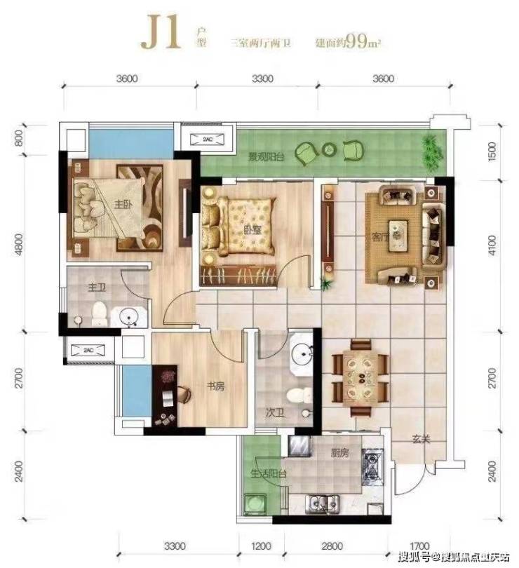 ? 建面97-99m²经典三房(套内82㎡)