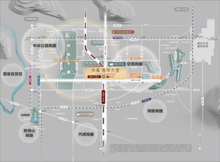 3⃣约600万方中央公园商圈启航,6大航母级商业体,汇祥空港荟街(约600米)、居易天街(约700米)、华辰财富广场(900米)、永辉超市、电影院、品牌店、餐饮不夜城(约600~800米);
