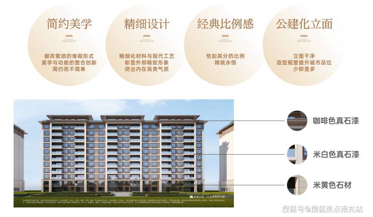 以“盛世唐风+现代简约”为核心,外立面采用石材和真石漆,搭配低饱和咖色基调辅以金色点缀,形成高低错落的古典建筑群组,呼应“日照锦城”的诗意光影效果。