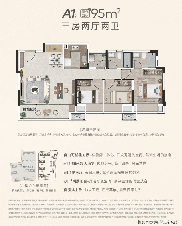 面积段:90㎡三房、95㎡三房、100㎡四房