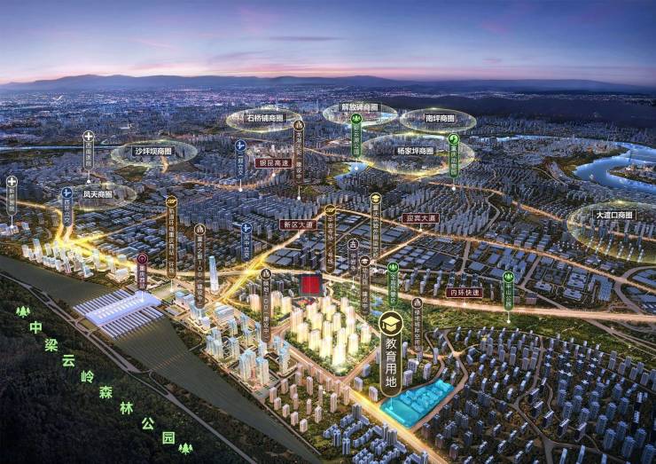 小区自身规划了占地约3000平米的幼儿园,预计设有16个班。步行距离仅约250米,就规划有一块教育用地,未来将会引进重庆“七龙珠”名校之一的育才中学,确定为涵盖小学到中学的九年一贯制学校。计17栋小高层,1550户。共2076套。