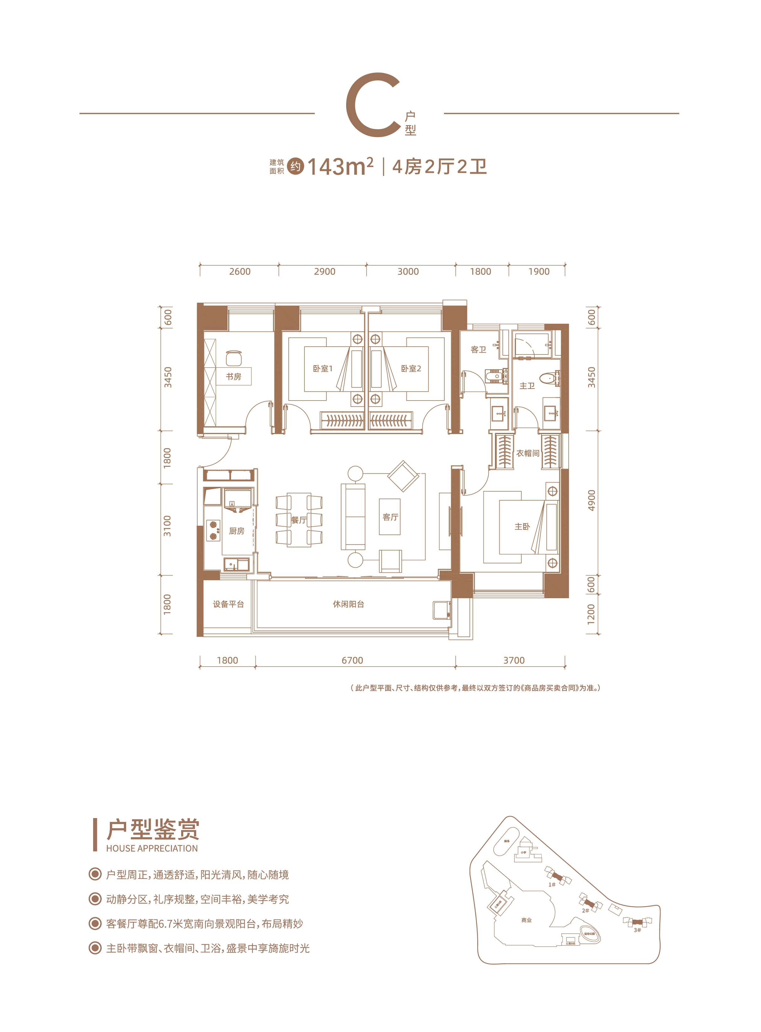 售罄 南北通透 户型方正 全明格局 客厅朝南 主卧朝南 带衣帽间 主卧带卫