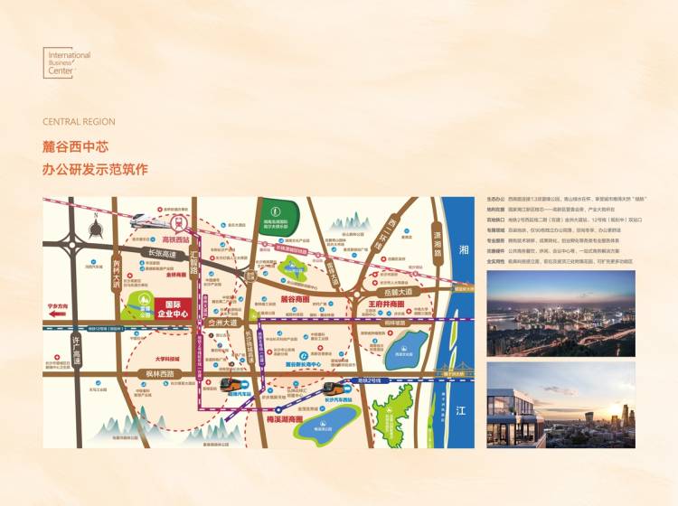 新长海国际企业中心由中国房地产开发企业500强、国家一级科技企业孵化器资质的新长海发展集团与大国传奇共同开发建设,处在大学科技城商圈、麓谷商圈、金桥商圈三圈聚焦的咽喉处。位于麓谷新区双西中心的金洲大道与汇智路交汇处西北角,坐拥地铁二号线、地铁十二号线双地铁口金洲大道站,离高铁西站、长株潭城际铁路仅5分钟车程。南面是国家重点打造的大学科技城,东面为杉杉新能源,北面为桑德新能源。项目四周新能源、新材料等综合性科技产业高度集中,高校及科研院所众多,三圈聚焦核心区域的国际企业中心必将成为科技产业桥头堡,企业腾飞地。
