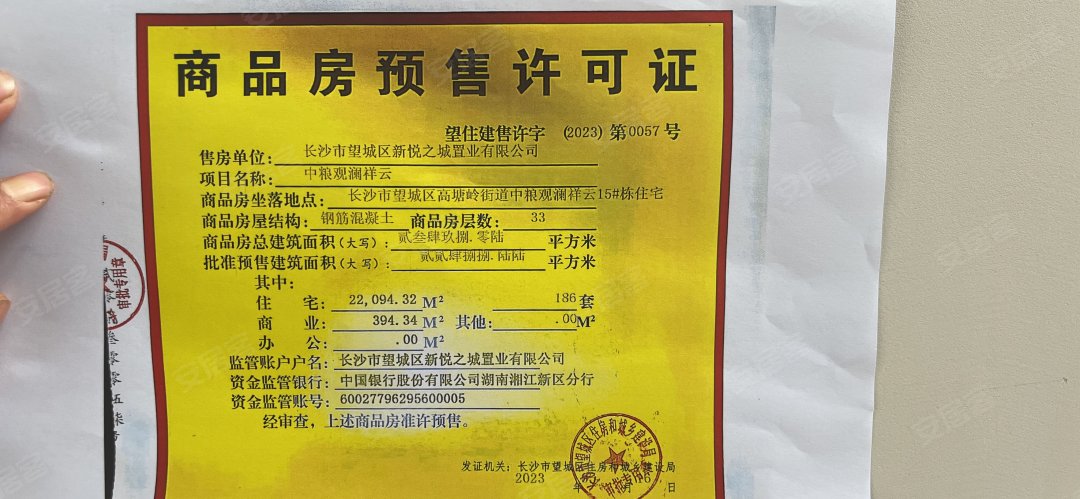 - 望住建售许字 (2023)第0057号 详情发证时间 2023-05-16绑定楼栋15#证件照片