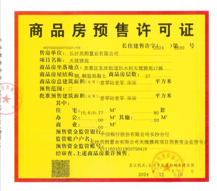 - 长住建售许字(2024)第0289号 详情发证时间 2024-12-10绑定楼栋17#(17号楼)证件照片