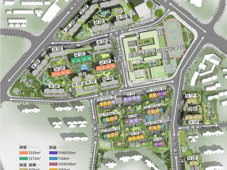 教育:配建九年一贯制学校(规划),周边天心区实验小学、湖南师大附中双语实验学校、明德中学、明德天心中学等;