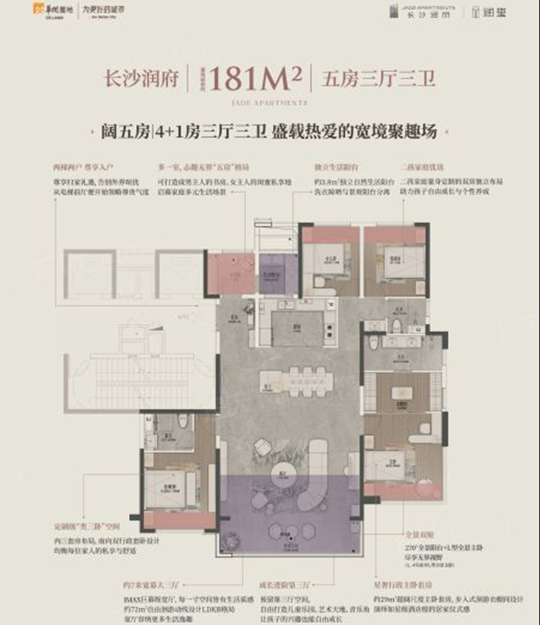 长沙润府,为全国第十二座、长沙首座,约240亩,约83万方规划将打造成涵盖办公、社区商业,品质住宅等一体化的城市综合体。匠筑建筑面积约143-268㎡人文臻萃大宅,为主城品质改善首选,为城市峯层定制生活范本,纯粹大平层住区,未来高净值客群汇聚,构建纯粹高阶圈层。