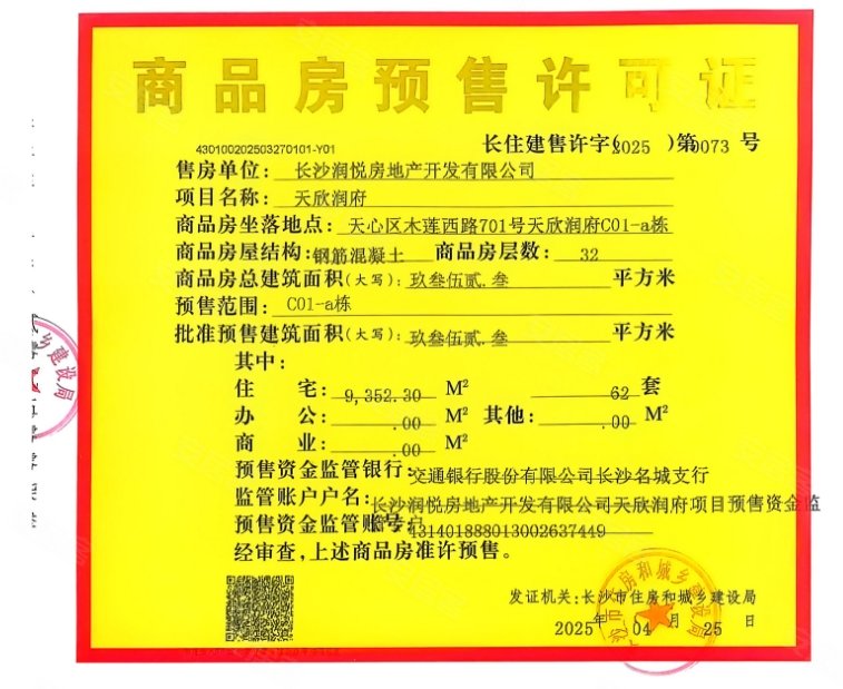 - 长住建售许字(2025)第0073号 详情发证时间 2025-04-25绑定楼栋C1-a#证件照片