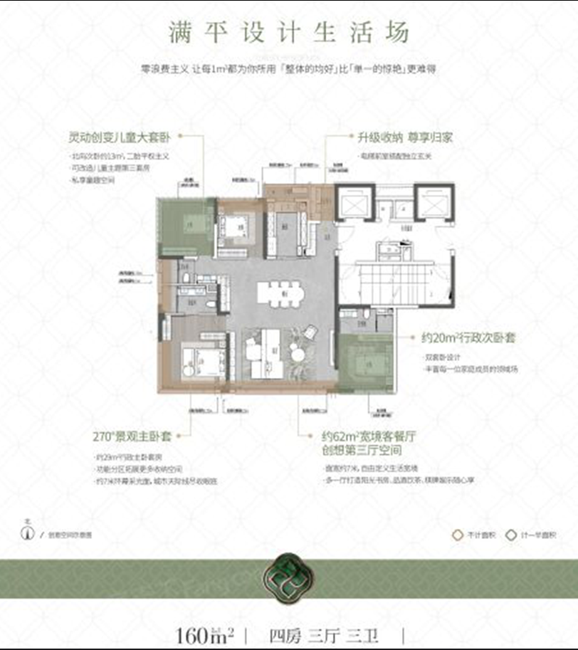 4室3厅3卫-建面约160㎡户型