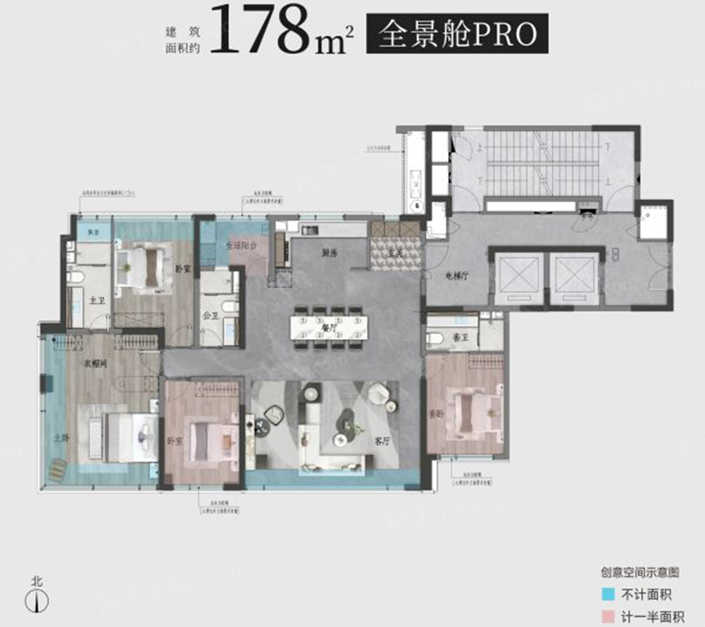 4室2厅3卫-建面约178㎡户型