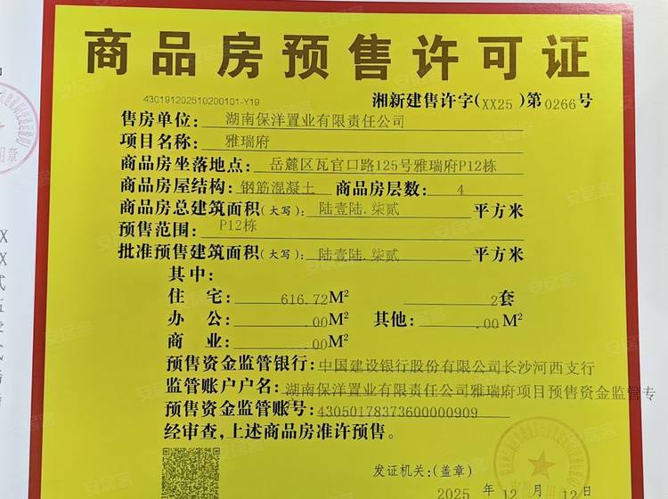 - 湘新建售许字(XX25)第0266号 详情发证时间 2025-12-12绑定楼栋P12#证件照片