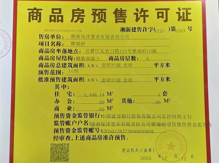 - 湘新建售许字(XX25)第0263号 详情发证时间 2025-12-12绑定楼栋L6#证件照片