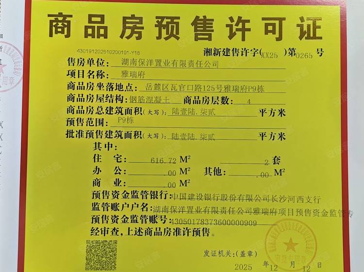 - 湘新建售许字(XX25)第0265号 详情发证时间 2025-12-12绑定楼栋P9#证件照片