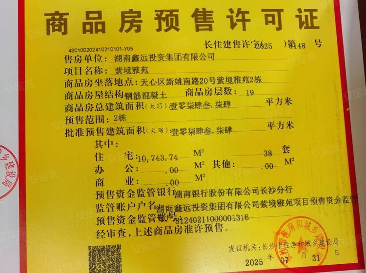 - 长住建售许字(2025)第0148号 详情发证时间 2025-07-31绑定楼栋2#证件照片
