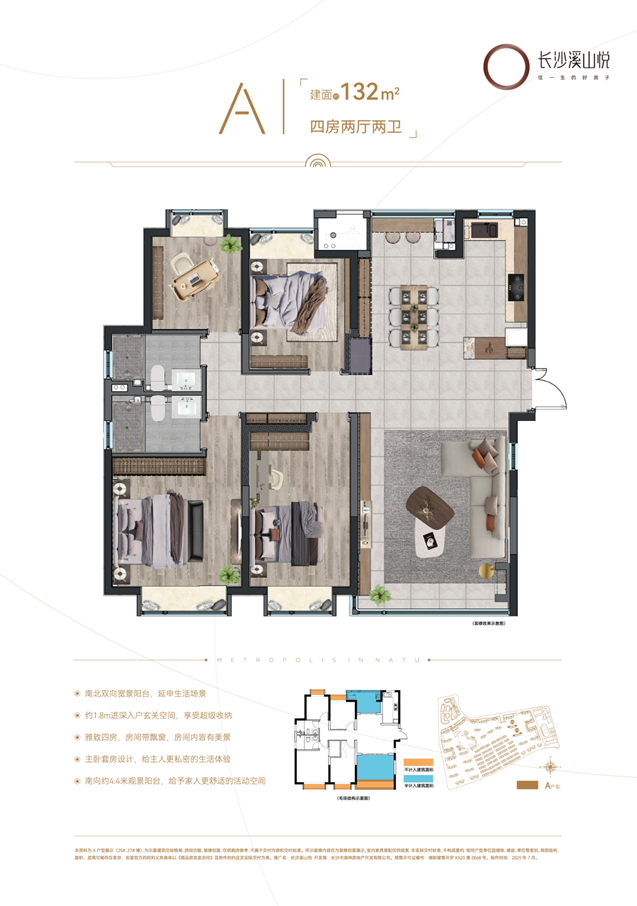 4室2厅2卫-A|建面约132㎡户型