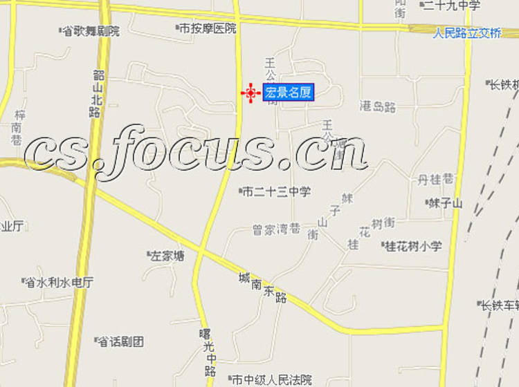 \"宏景名厦\"项目位于长沙市韶山北路243号,西临城市主要道路韶山路,北距人民路不足100米,南临市国税局办公大楼,东向为湖南橡胶厂。 住宅设计是该项目的重点,也是该项目的亮点,设计奉行\"以人为本\",\"以住户的使用为中心\"原则,充分满足人居生活的需要。