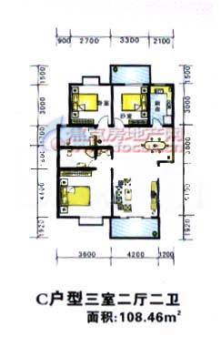 3室2厅2卫-紫薇苑C三室两厅两卫108.46平米