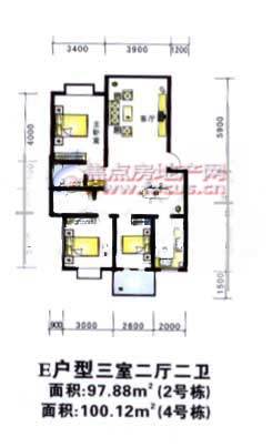 3室2厅2卫-紫薇苑E三室两厅两卫97.88平米