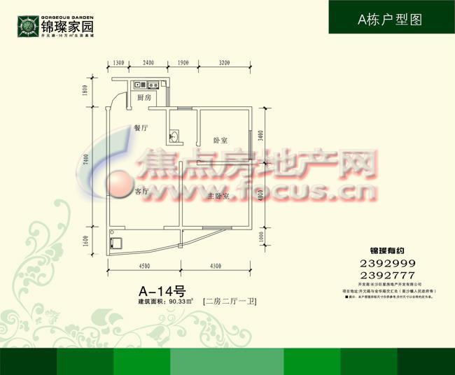 2室2厅1卫-锦璨家园A-14二房二厅一卫90.33平米户型
