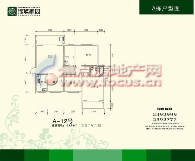 2室2厅2卫-锦璨家园A-12三房二厅二卫123.79平米户型