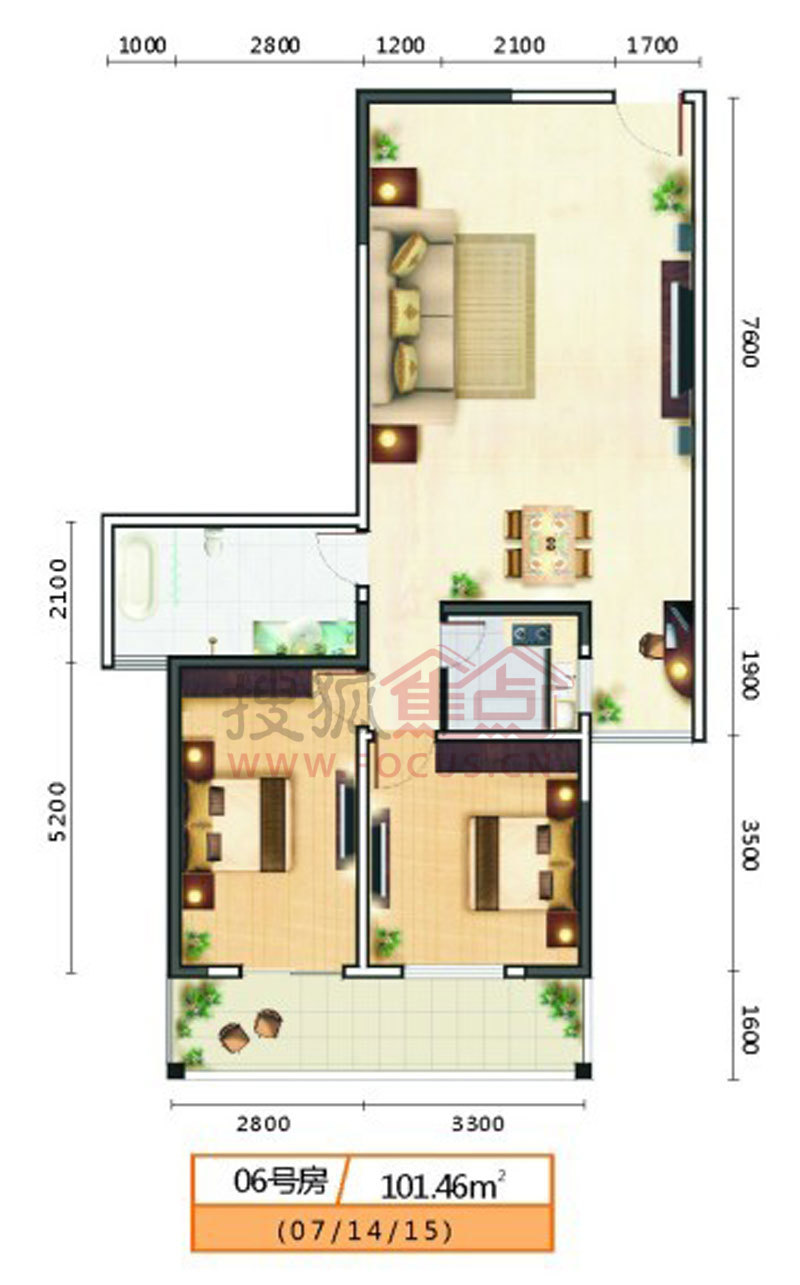 2室1厅1卫-锦璨家园06号房两室一厅一卫101.46㎡户型