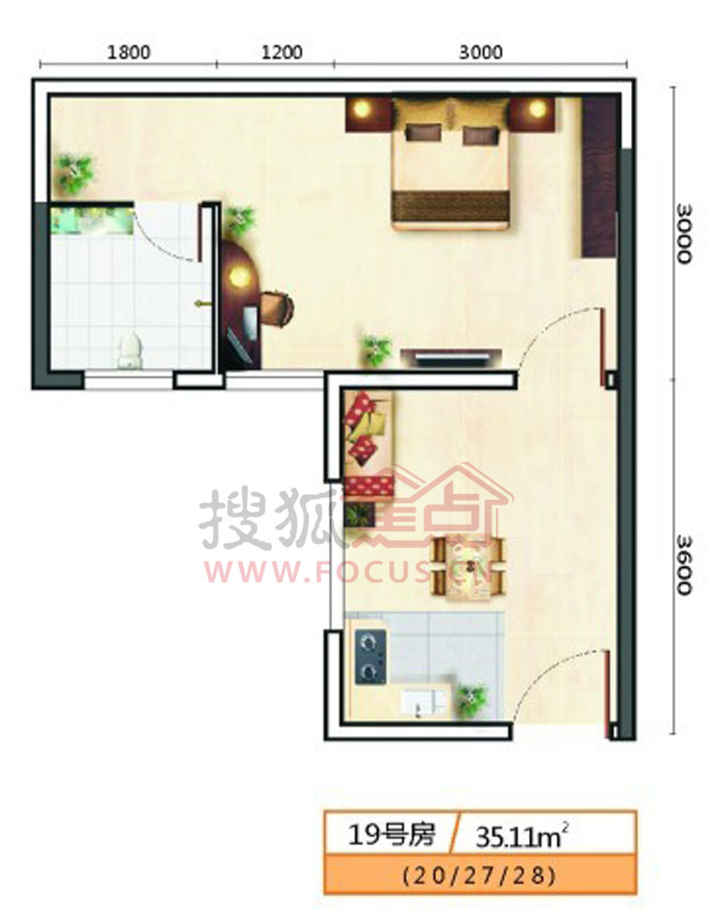 1室1厅1卫-锦璨家园19号房一室一厅一卫35.11㎡户型