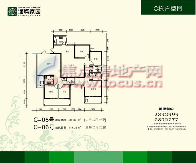 0室-锦璨家园C-05二房二厅一卫80.96平米,C-06三房二厅二卫117.36平米户�
