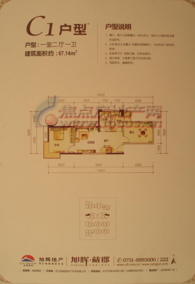 1室2厅1卫-旭辉藏郡C1一房两厅一卫67.14平米