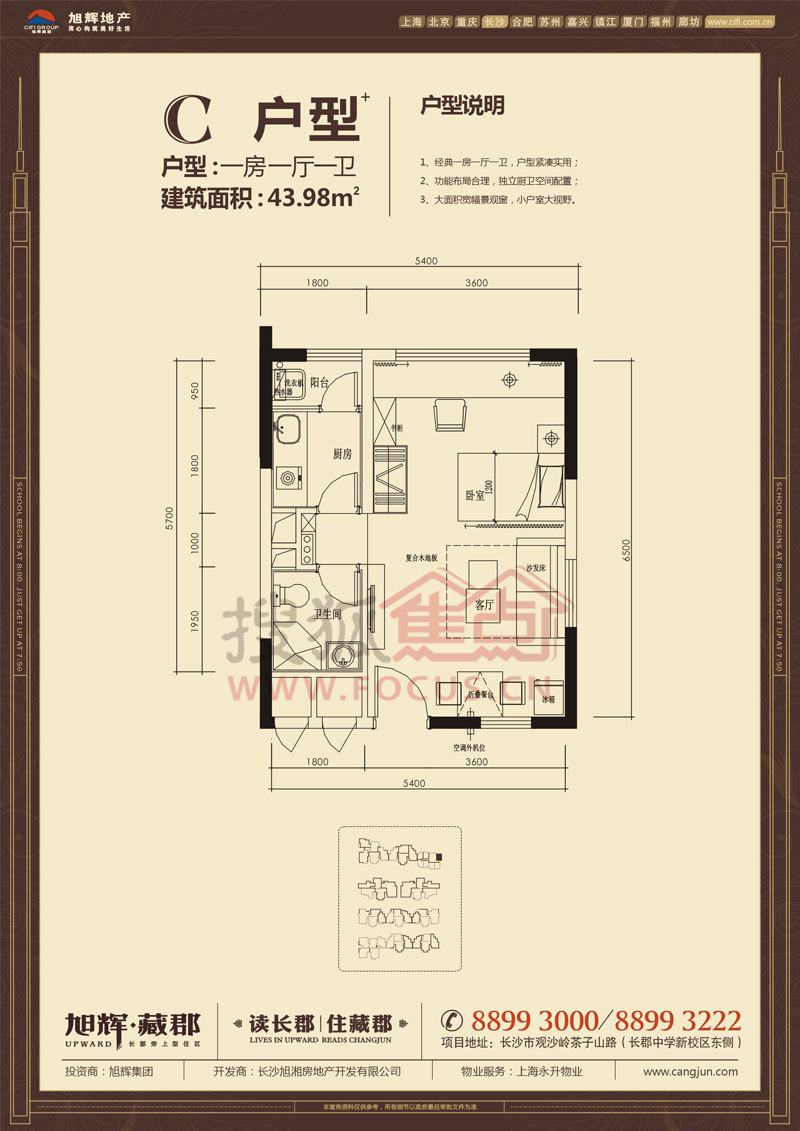 1室1厅1卫-旭辉藏郡才C一房一厅一卫43.98㎡
