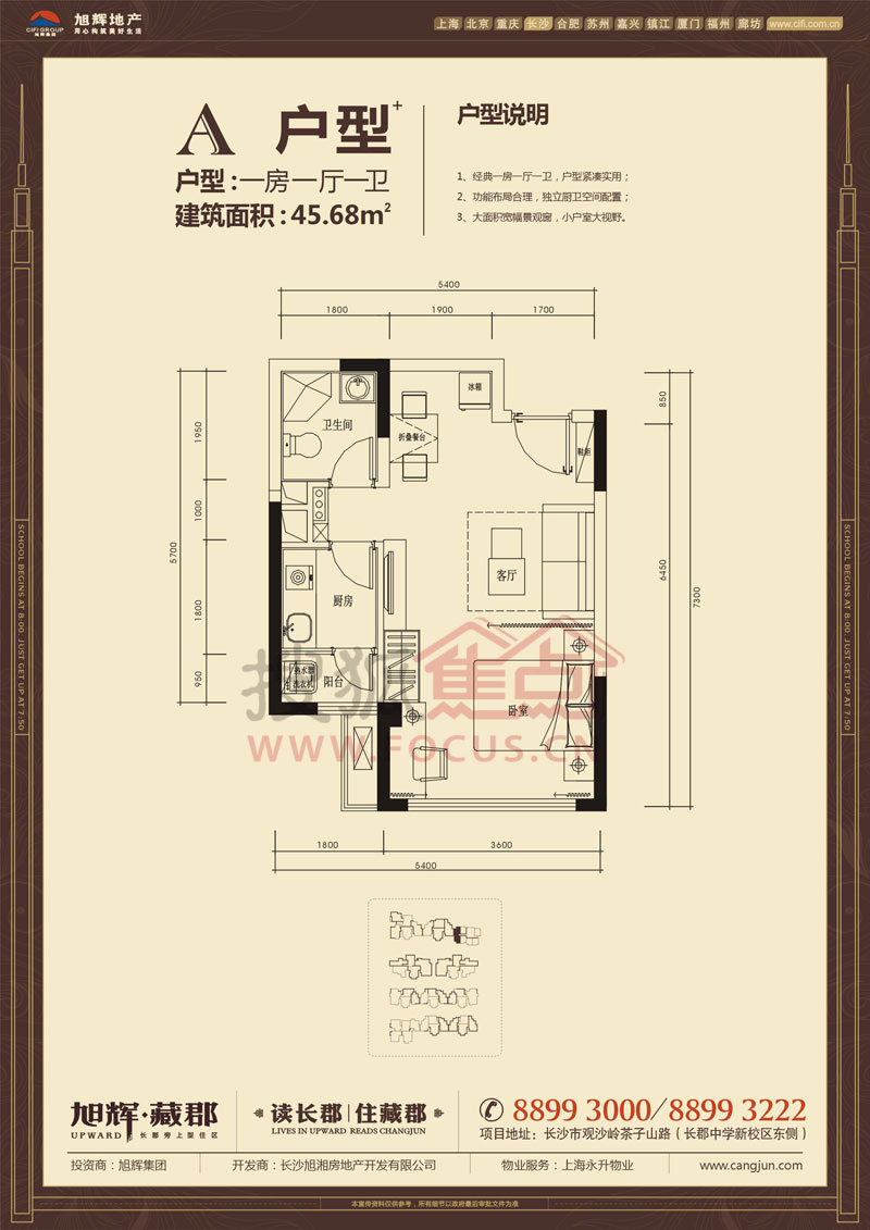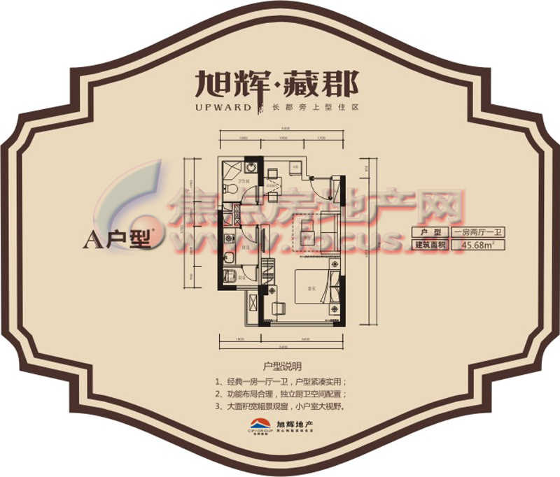 1室1厅1卫-旭辉藏郡A一房一厅一卫45.68㎡