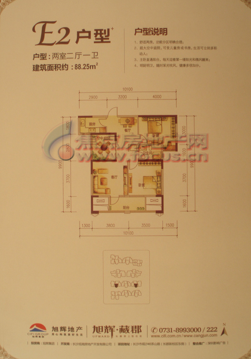 2室2厅1卫-旭辉藏郡E2两房两厅一卫88.25平米