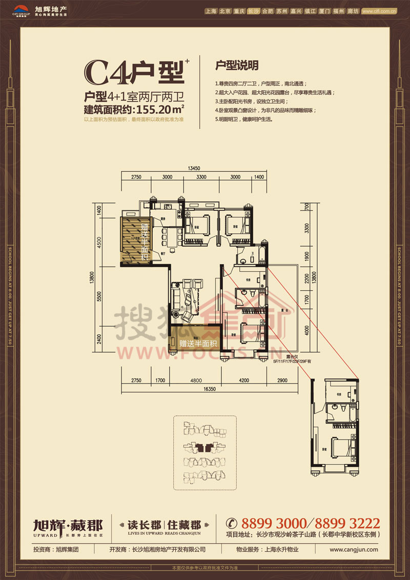 2室2厅2卫-旭辉藏郡C4两房两厅两卫155.20㎡