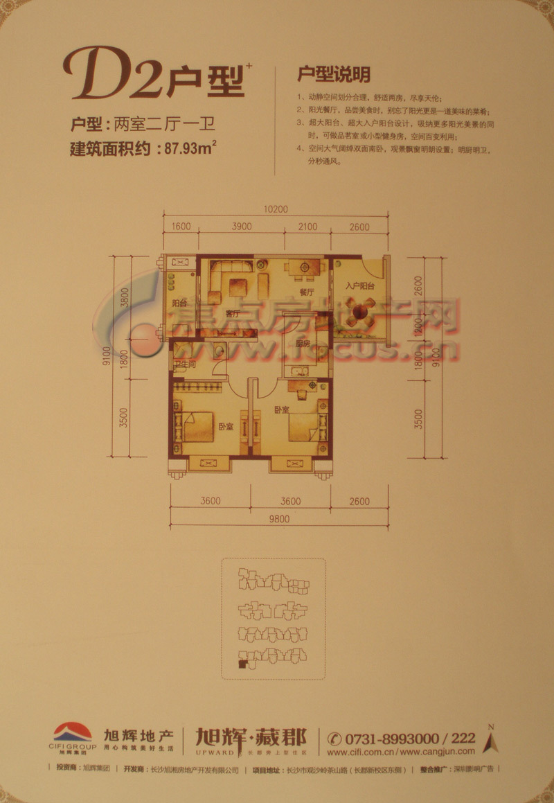 2室2厅1卫-旭辉藏郡D2两房两厅一卫87.93平米