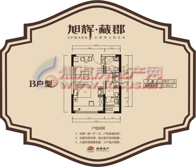 1室1厅1卫-旭辉藏郡B一房一厅一卫43.38㎡
