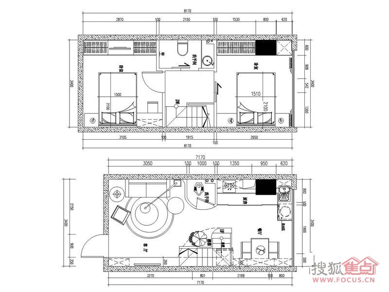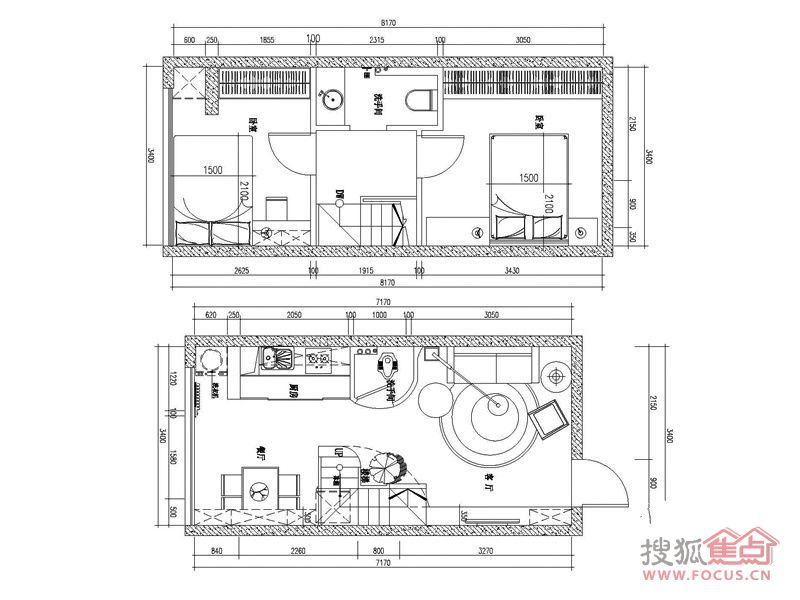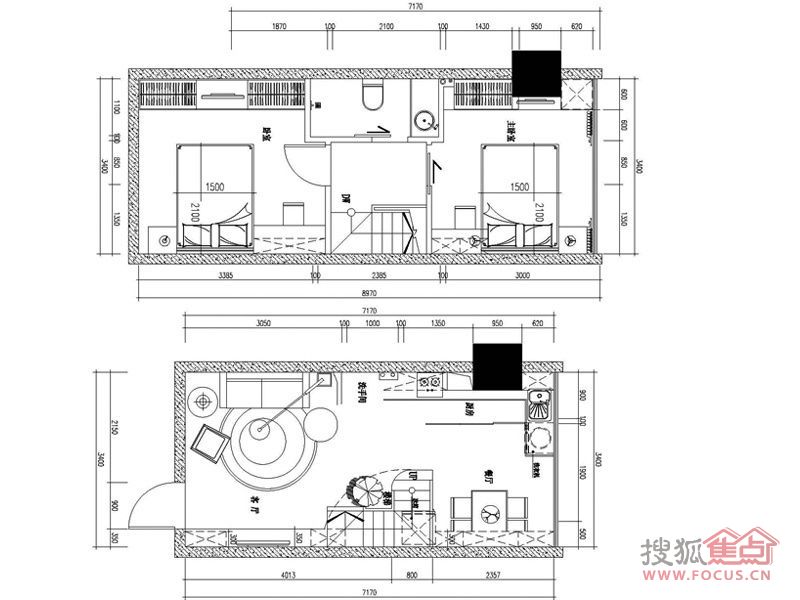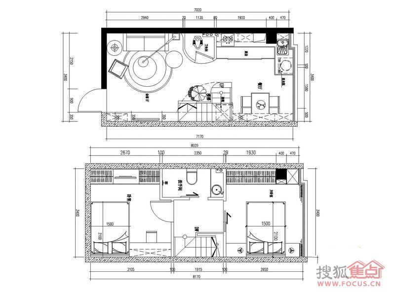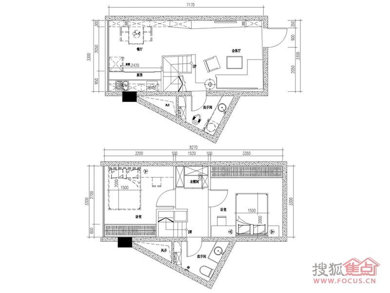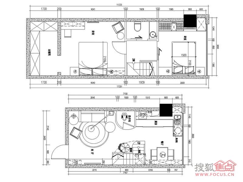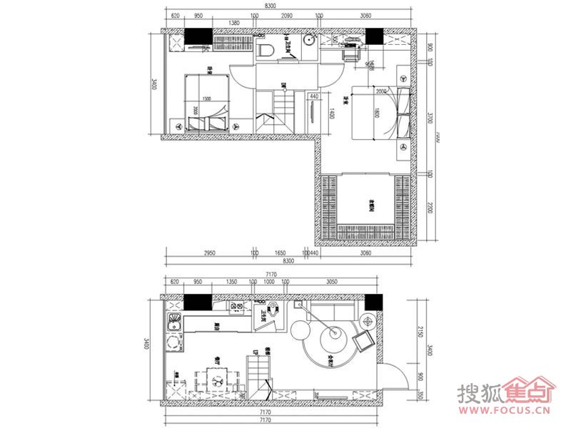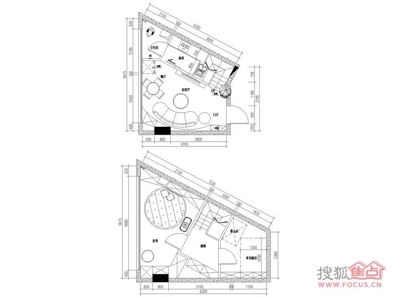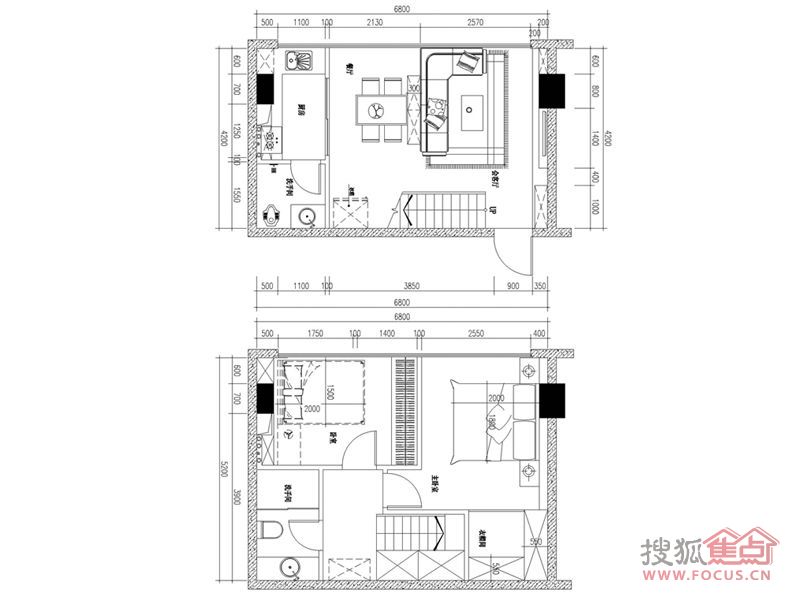 2室2厅1卫-金色loft两室两厅47㎡复式户型