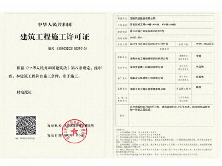 - 长住建售许字(2021)第0237号 详情发证时间 2021-05-17绑定楼栋五期A3#